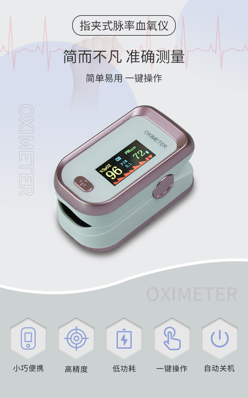 3.我们的血氧监测指尖设备采用一按键设计,使用方便。只需插入手指,等待 3-5 秒即可获得读数,移开手指后,设备会自动关闭。它节能、环保,可重复使用。